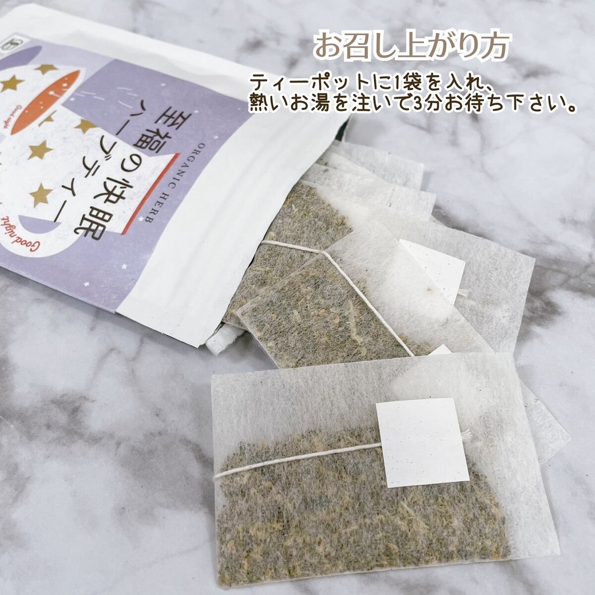 厳選した有機カモミールやレモンバームなど、心地よい睡眠に最適なハーブを使用してブレンド。